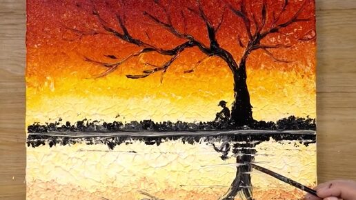 Техника акриловой живописи _ Как нарисовать мужчину, сидящего под деревом