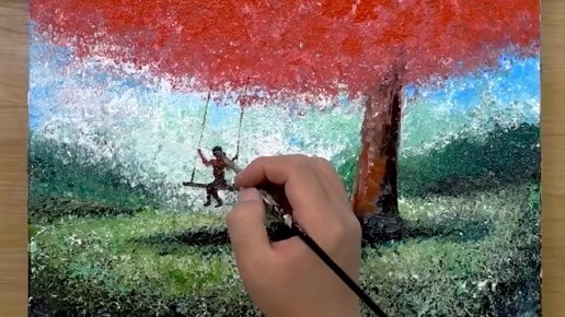 Техника рисования алюминием _ Как нарисовать девочку на качелях