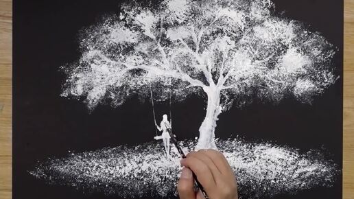Техника рисования белым алюминием _ Как нарисовать девочку на качелях