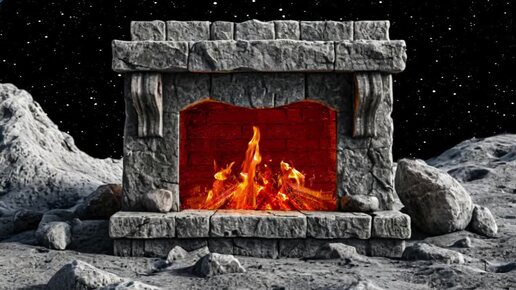 Лунный пейзаж и камин.