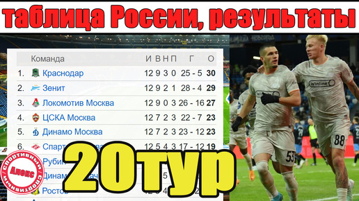 Чемпионат России по футболу. Таблица, расписание, результаты 20 тура.