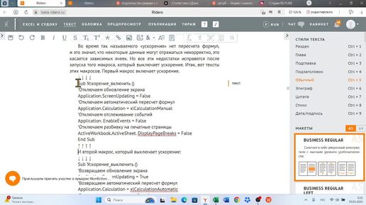Создаем макросы, включающие и выключающие ускорение Эксель