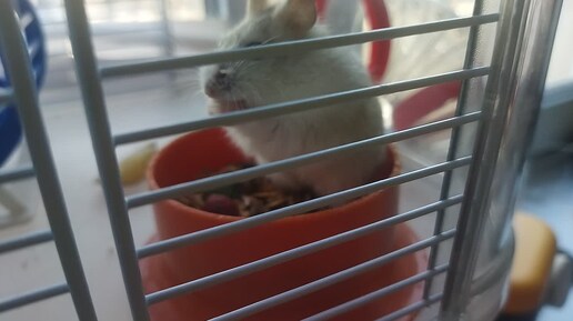 В нашей семье прибавление. Два джунгарских хомячка. Осваивают клетку и кормушку.