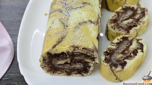 Совершенство в каждом кусочке. Мраморный рулет с банановым кремом