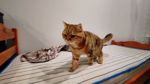 Персик прыгает за своей любимой игрушкой, ждёт с работы и просит её достать