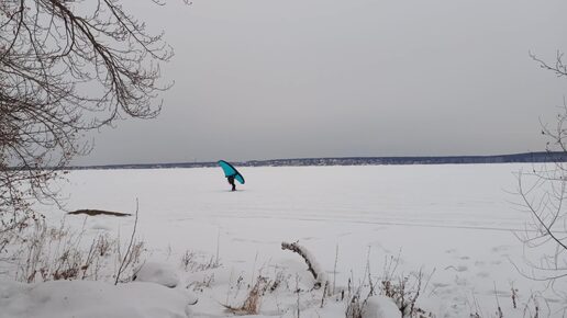 Парус на зимнем озере Шарташ в Екатеринбурге
