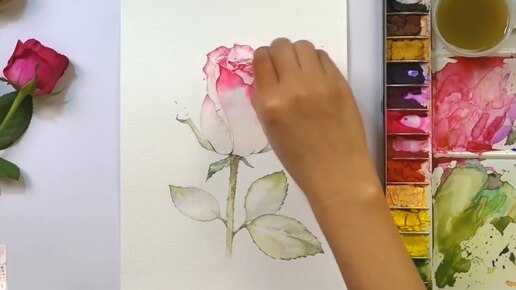 Техника 'мокрым по мокрому' - Как нарисовать розу легко