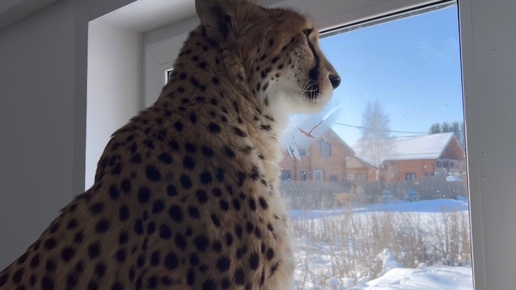 Гепард на спорте😅Три раза ходила туда сюда,пока почистят тропинку к любимому домику с окном в природу.