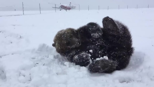 Как медвежонок Мансур радовался первому снегу в его жизни 🐻❄️