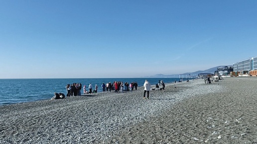Адлер, 09.03.2025. Набережная и пляж "Лазурь". На праздничных выходных у нас много народа, к тому же погода благоприятствует отдыху у моря.