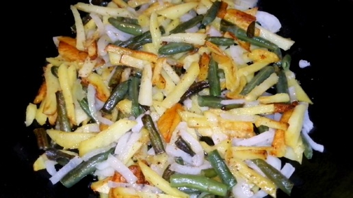 7.03.2025 / Влог: Поздний ужин. Жареная картошка со стручковой фасолью.