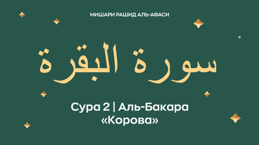 Сура 2 Аль-Бакара — Корова (араб. سورة البقرة). Читает Миша́ри ибн Ра́шид аль-Афа́си (араб. مشاري بن راشد العفاسي ).
