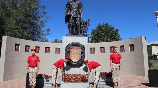 Памятник советскому солдату в парке Победы г. Жирновск: скульптор показывает.