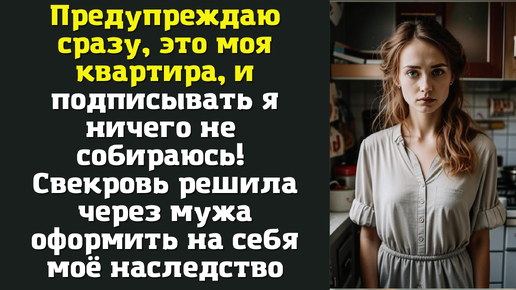 Предупреждаю сразу, это моя квартира, и подписывать я ничего не собираюсь! Свекровь решила через мужа оформить на себя моё наследство