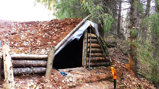 Строю ЗЕМЛЯНКУ в ТАЙГЕ возле ручья! Часть 3. Продолжаю работы с крышей и фронтальной стеной!!! №150