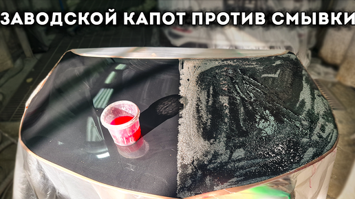 "Смывка на заводских деталях не работает!" Сейчас я развею подобные мифы. Капот в заводском окрасе, наношу смывку без риски на лаке