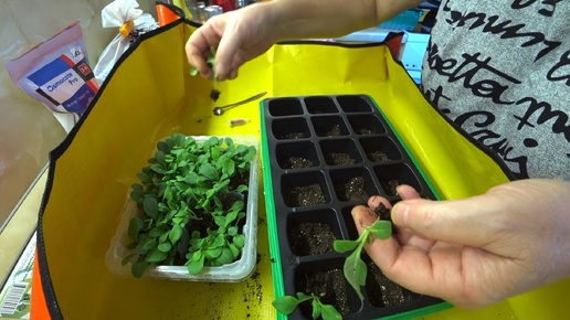 Взошли все семена петунии. Рассживаю в отдельные «домики».