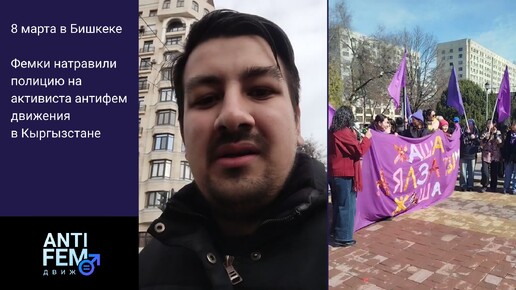8 марта в Бишкеке. Фемки натравили полицию на активиста антифем движения в Кыргызстане