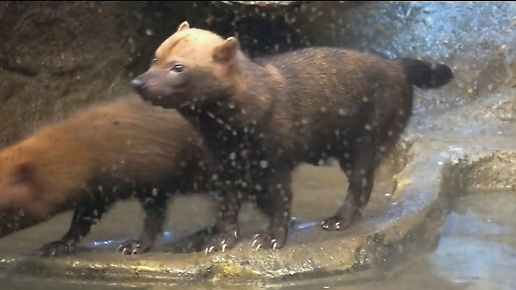 Купание и прыжки в воду от веселой компании кустарниковых собак.
