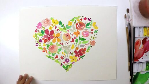 Акварельная роспись цветов ♥ в форме сердца - Уровень 4