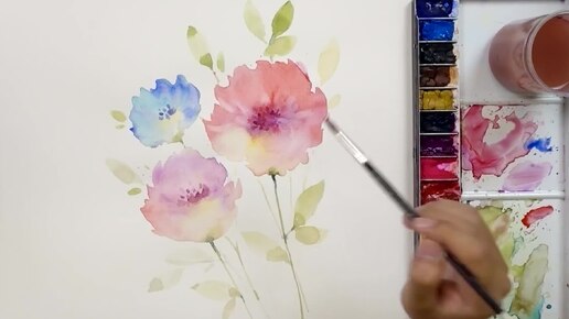 Акварельная роспись цветов в технике "Мокрое по мокрому"
