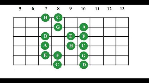 Аппликатура мелодической мажорной гаммы на грифе гитары