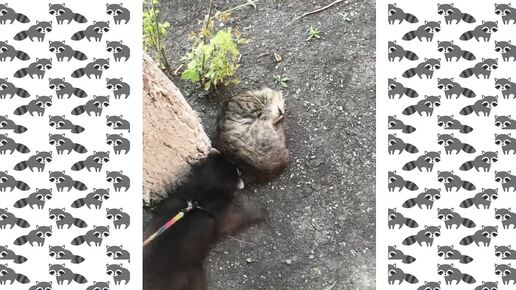 Енот докопался до спящий кошки! Для тех кто думает что прогулка это легко...