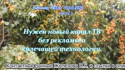 Железов Валерий. Вебинар 330. ч.3. Нужен новый канал ТВ без рекламы и калечащей технологии.