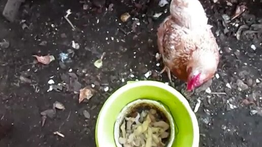 Кормление курочки картофельными очистками