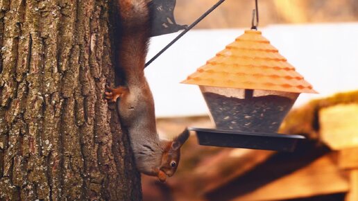 Белка ворует у птиц семечки. Тест объектива Tamron 50-300mm