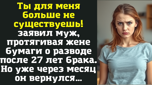 Ты для меня больше не существуешь – заявил муж, протягивая жене бумаги о разводе после 27 лет брака. Но уже через месяц он вернулся