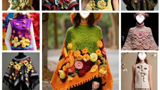 ПОНЧО и ЖИЛЕТЫ с цветами от нейросети. Подборка №1. ВЯЗАНИЕ.