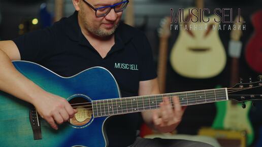 ТРАНСАКУСТИЧЕСКАЯ ГИТАРА SQOE СИНИЙ ГРАНД АУДИТОРИУМ С ВЫРЕЗОМ ИЗ МАССИВА ЕЛИ - MUSIC SELL