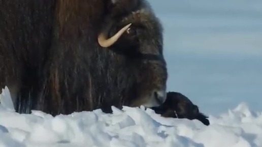 Овцебык помогает детёнышу делать первые шаги под сингл День за Днём