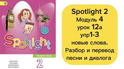 Spotlight 2.Модуль 4.Урок 12а.упр1-3.Новые слова.Разбор и перевод песни и диалога.