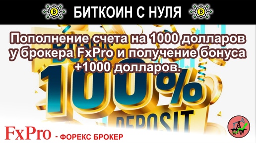 Пополнение счета на 1000 долларов у брокера FxPro и получение бонуса +1000 долларов. Открытие сделок