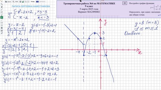 ОГЭ 22 2025 Постройте график функции -х2-2х+2 -х-2 Определите при каких значениях m прямая y m= имеет с графиком ровно две общие точки