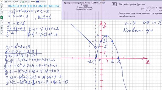 ОГЭ 22 2025 Постройте график функции -х2+2х+3 -х+1 Определите при каких значениях m прямая y= m имеет с графиком ровно две общие точки