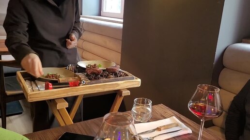 Ресторан Roomi, Архангельск. Оленину перед подачей обжигают у стола.