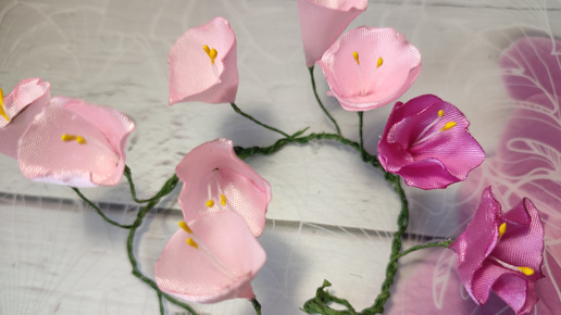 Вьюнок, полевые цветы из лент, канзаши. Цветы для венка, микро букета, брошки, декора