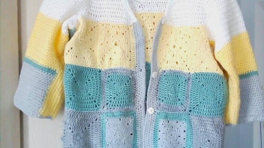 Кардиган связан!"Полосатая мозаика".Примерка из 2х образов.СП "Год кардиганов.март 2025г.