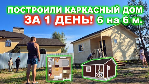 ЗА 1 ДЕНЬ! Построили каркасный, дачный, гостевой дом 6 на 6 метров с крыльцом.