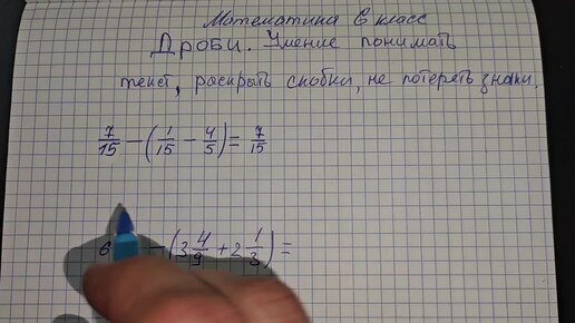 Дроби. Умение понимать текст, раскрыть скобки не потеряв знаки. Математика шестой класс