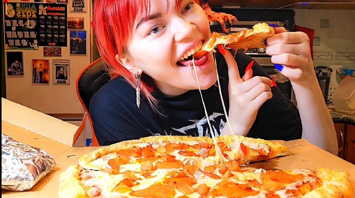 Мукбанг | Пицца острая Чорризо и пикантная Пепперони. Обжорчик