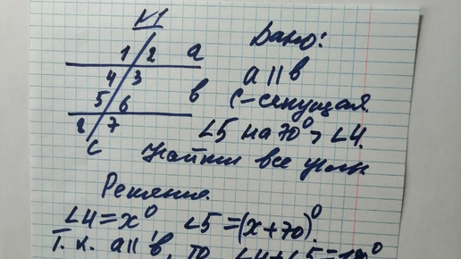 Геометрия 7 класс. Теоремы об углах, образованных двумя параллельными прямыми и секущей. Решение задач.