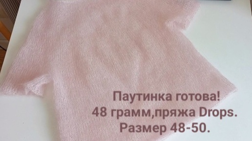 Паутинка готова! Пряжа Drops мохер на шёлке, 48 грамм,размер 48-50.
