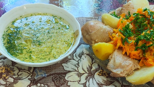 Суп лапша с домашней курицей.