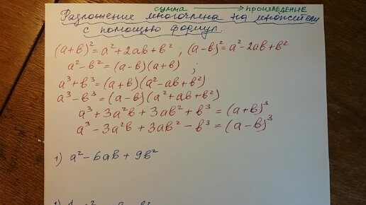 Алгебра 7 класс. Разложение на множители с помощью формул сокращённого умножения.