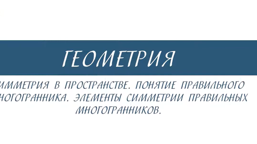 10 класс - Геометрия - Правильный многогранник. Элементы симметрии правильных многогранников