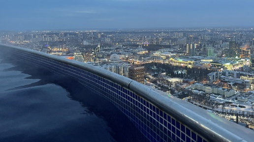 Вид на Екатеринбург из бассейна под открытым небом на 54 этаже